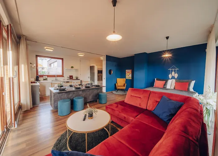 Marvel 2Bd Apartment In Modern Villa With Cozy Terrace have a view over the garden. A highlight of this 1-bedroom apartment for guests is the presence of a hair dryer and bath sheets in the bathroom.